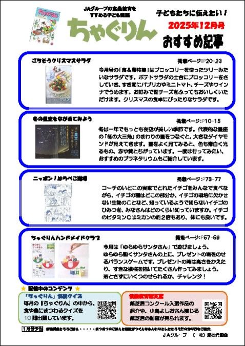 TOP > 新着・重要なお知らせ > 「家の光」「ちゃぐりん」2025年12月号の内容を紹介します!