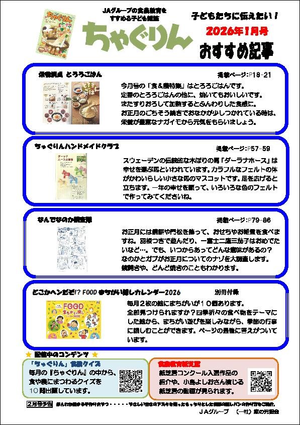 TOP > 新着・重要なお知らせ > 「家の光」「ちゃぐりん」2026年1月号の内容を紹介します!